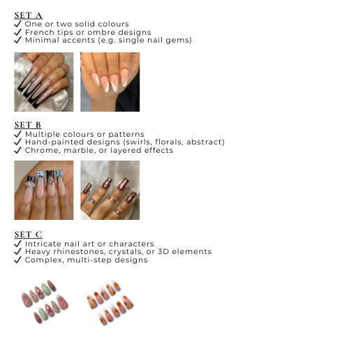 Elevate your nail game with a set that’s as unique as you are. Our Custom Nail Set gives you full creative control – from shape and length to colours, finishes, and designs. Whether you’re looking for sleek minimalism, bold statement art, or something perfectly in between, your imagination is the blueprint.